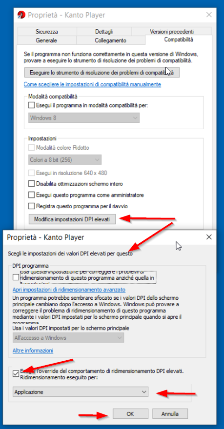 E’ necessario aprire il programma Kanto Player in modalità bassa risoluzione. Segui i passi descritti qui sotto: